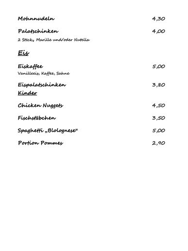 Kaffee/Kuchen/Eis/Getränke jederzeit.